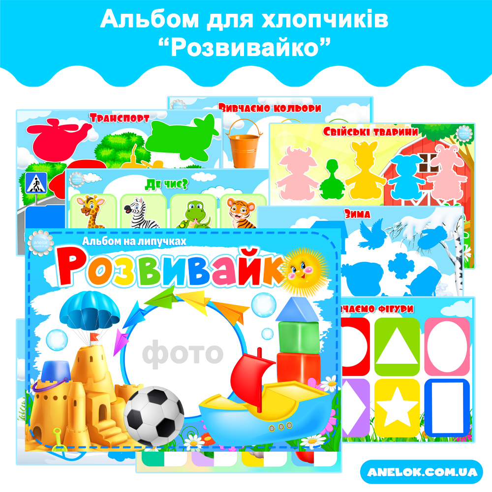Купити Альбом на липучках Розвивайко (для хлопчиків) — Всеукраїнський портал Anelok — Ігри для друку