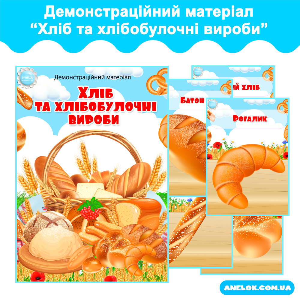 Демонстраційний матеріал Хліб та хлібобулочні вироби — Всеукраїнський портал Anelok — Ігри для друку