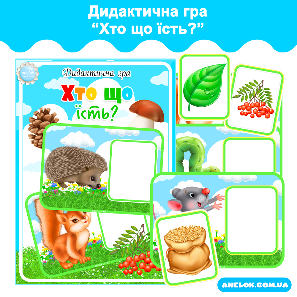 Дидактична гра Хто що їсть? — Всеукраїнський портал Anelok — Ігри для друку