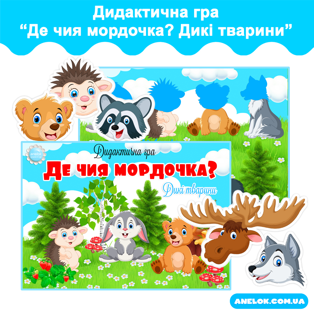 Дидактична гра з липучками Де чия мордочка? Дикі тварини — Всеукраїнський портал Anelok — Ігри для друку