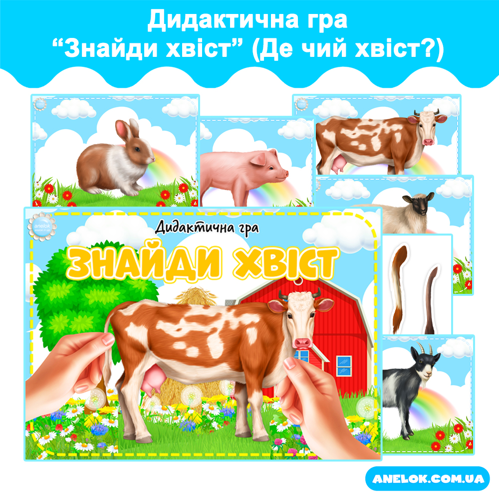 Дидактична гра Знайди хвіст (Екопростір розвитку дитини. Природа. Пізнавальний розвиток. Тваринний світ. Свійські тварини. Розвиток мовлення. Дрібна моторика рук. Ранній вік. Молодший вік. Середній вік. Старший вік.)