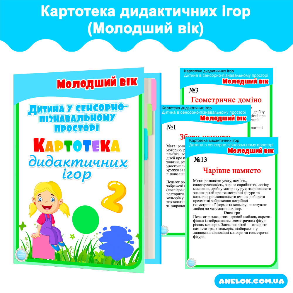 Купити Картотека дидактичних ігор Дитина у сенсорно-пізнавальному просторі. Молодший вік — Всеукраїнський портал Anelok — Ігри для друку