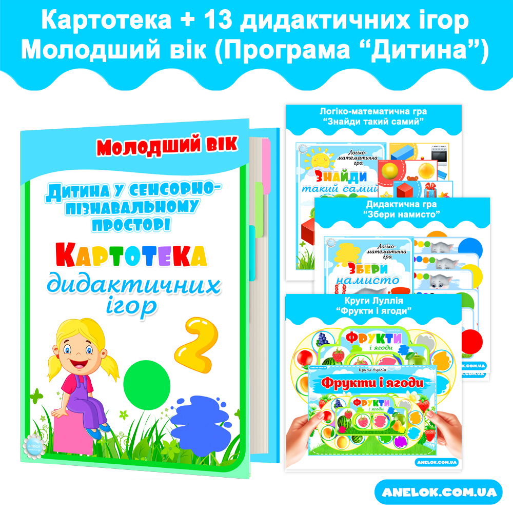 Купити Комплект Картотека дидактичних ігор + Ігри. Дитина у сенсорно-пізнавальному просторі. Молодший вік — Всеукраїнський портал Anelok— Ігри для друку