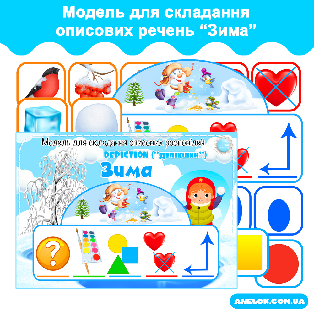 Купити Модель для складання описових речень Depiction Зима — Всеукраїнський портал Anelok — Ігри для друку