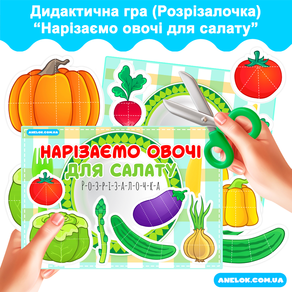 Нарізаємо овочі для салату – дидактична гра (Розрізалочка) для дошкільнят – Anelok