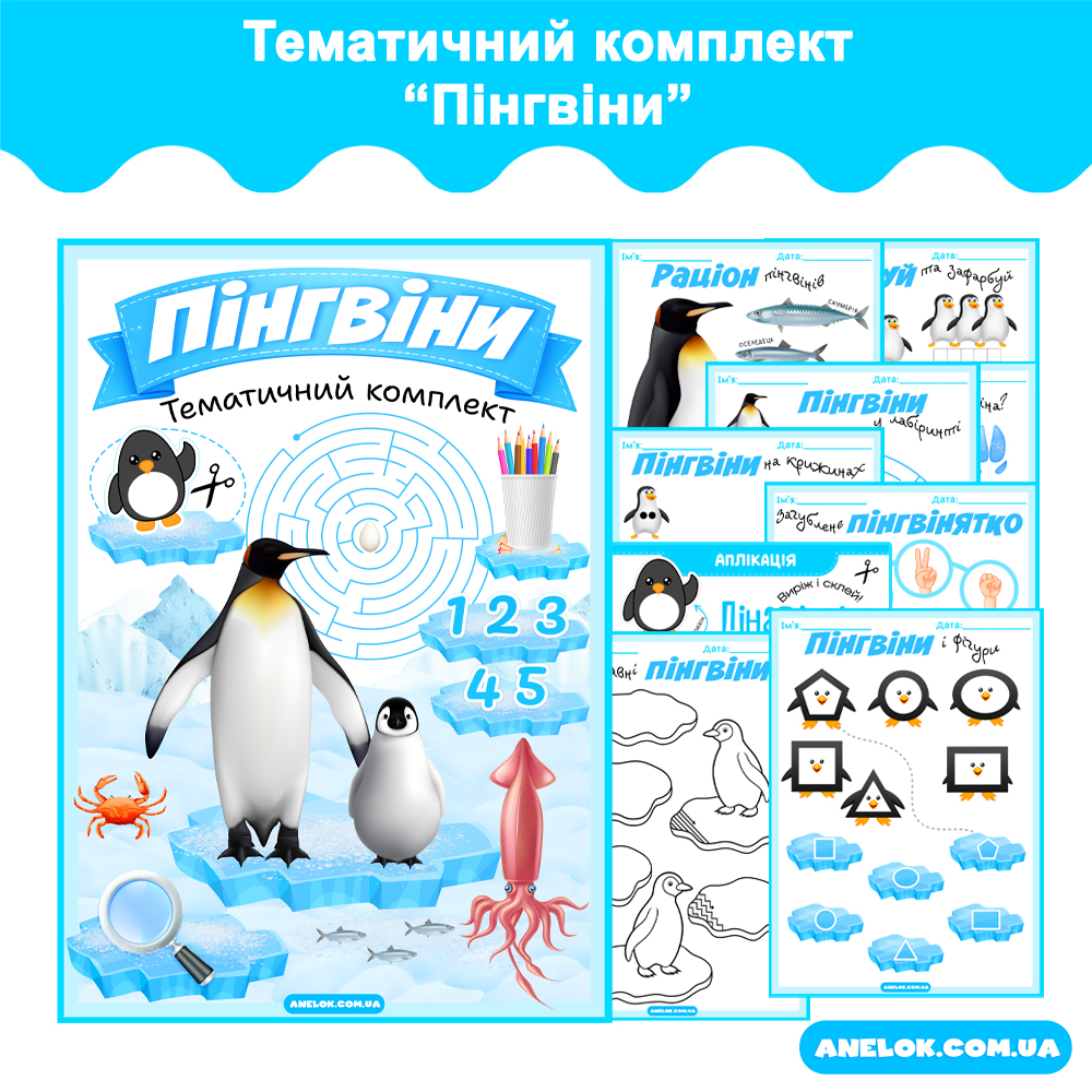 Пінгвіни – Тематичний комплект (День пінгвінів) для дошкільнят – Anelok