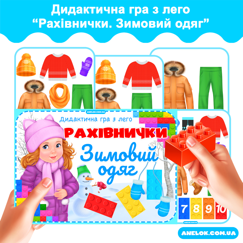 Дидактична гра з лего Рахівнички. Зимовий одяг для дошкільнят – Anelok