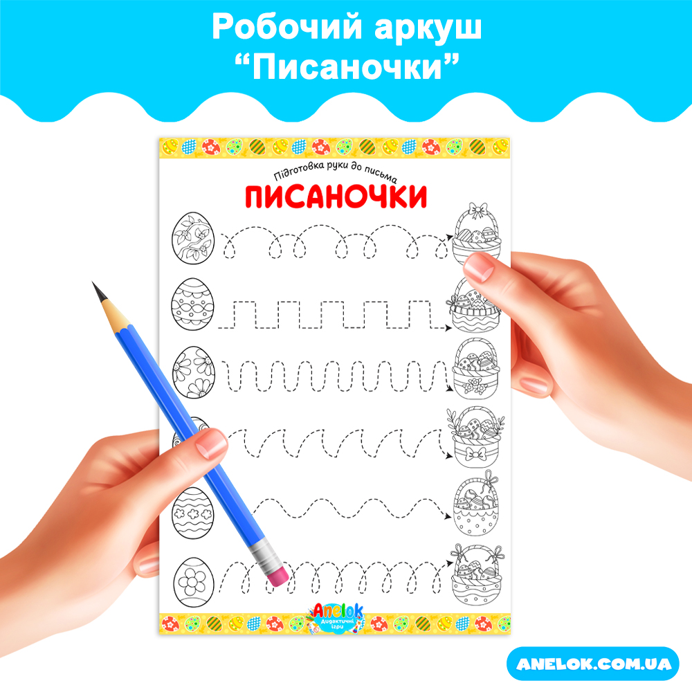Готуємося зустрічати Великдень із користю для маленьких пальчиків! Робочий аркуш Писаночки — це ідеальне поєднання творчості та навчання дітей дошкільного віку. Виконуючи цікаві завдання, закріплюються знання про великодні традиції та звичаї українського народу – розписування великодніх яєць, відбувається ефективна підготовка руки до письма. Графомоторні вправи допомагають малюку стати впевненішим у володінні олівцем, що є фундаментом для успішного навчання у школі. Дидактичний матеріал для дошкільнят відповідає сучасним стандартам БКДО.