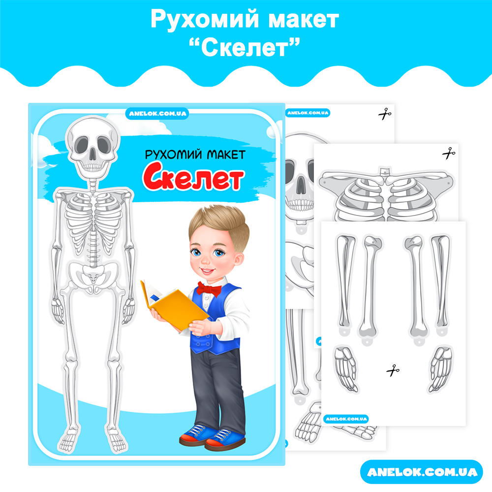 Рухомий макет Скелет (для дітей) в електронному форматі містить: