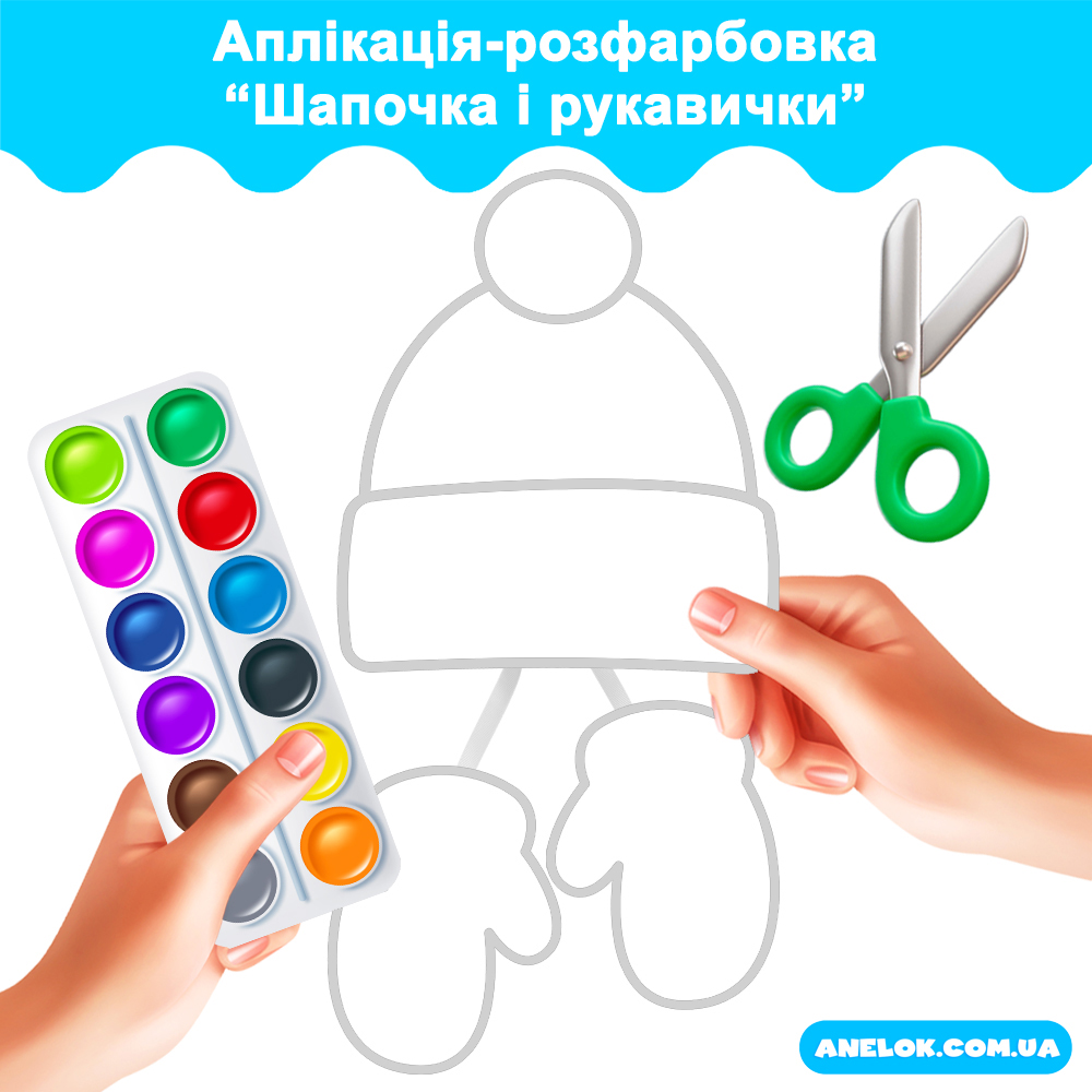 Шапочка і рукавички – аплікація-розфарбовка для дітей 3-7 років: шаблони для творчості, ЗДО, НУШ