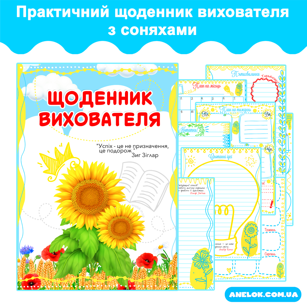 Щоденник вихователя з соняхами — Всеукраїнський портал Anelok — Ігри для друку