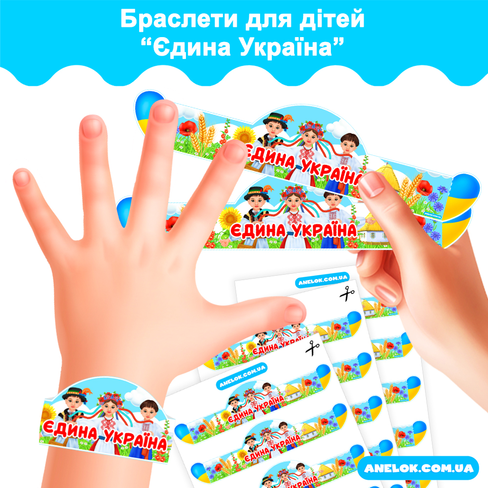 - Шаблони патріотичних браслетів із написом «Єдина Україна» (5 шт на аркуші).