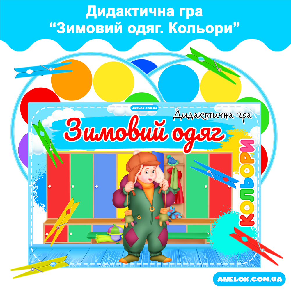 Зимовий одяг (Кольори) – Дидактична гра з прищіпками для дошкільнят – Anelok